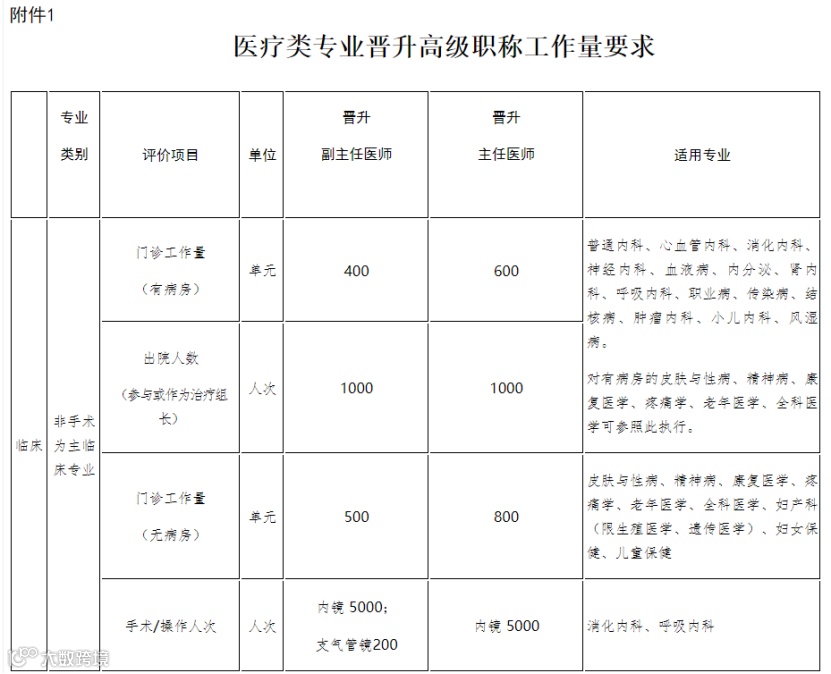 附件:1.医疗类专业晋升高级职称工作量要求