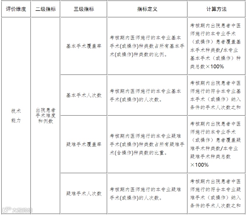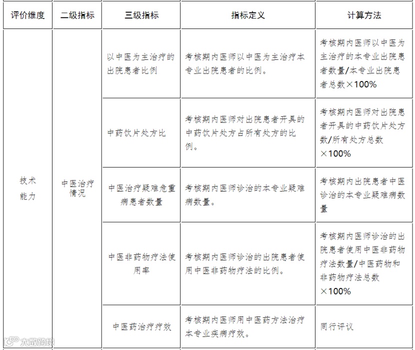 基于病案首页数据,重点从技术能力、 质量安全、资源利用、患者管理四个维度,利用诊治病种范围和例数、手术级别和例数、术后并发症发生率、单病种平均住院日、单病种次均费用等指标,科学准确评价医师的执业能力和水平。其中,中医专业还应基于中医病案首页数据,重点围绕以中医为主治疗的出院患者比例、中药饮片处方比、中医治疗疑难危重病患者数量、中医非药物疗法使用率等中医药特色指标,评价中医医师的中医药诊疗能力和水平。具体指标见附件2。