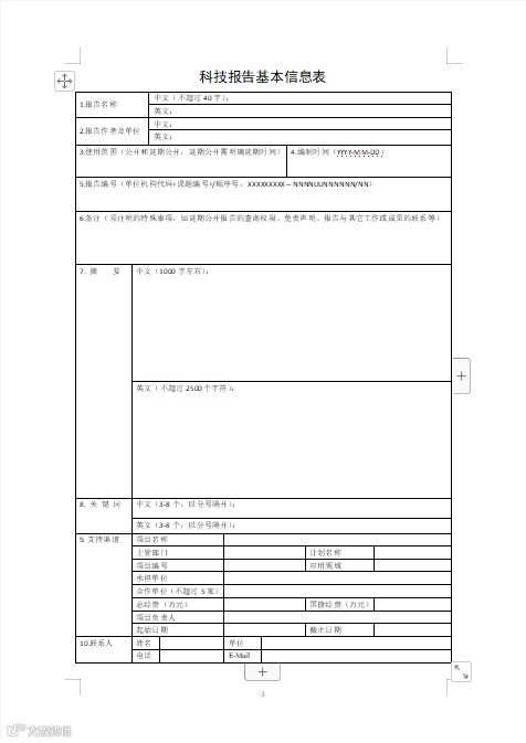 导读:科技报告格式模板