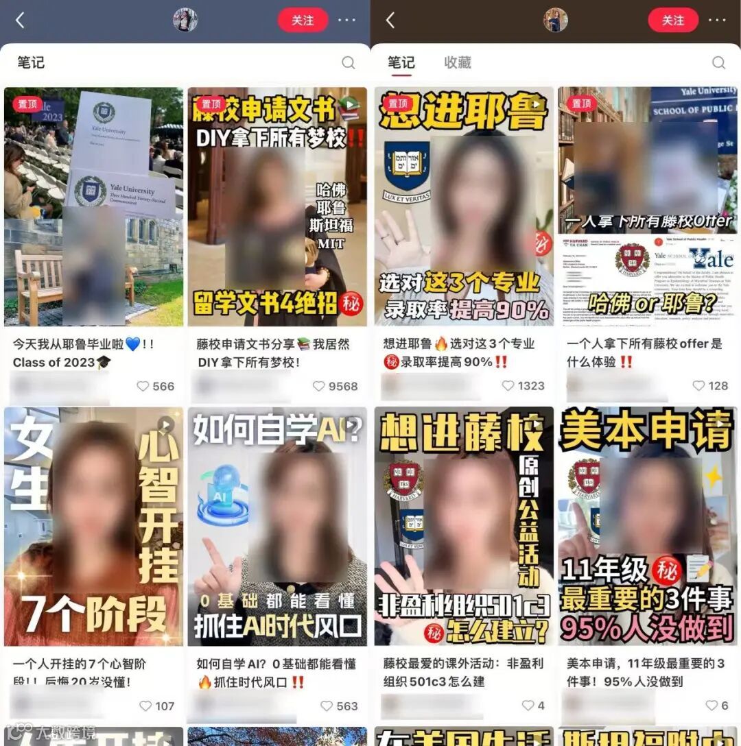 例如下面这位博主,利用自己成功毕业的优势,分享名校申请攻略,用“留学文书分享”、“想进耶鲁选对专业”这些话题,吸引了好多潜在用户关注。