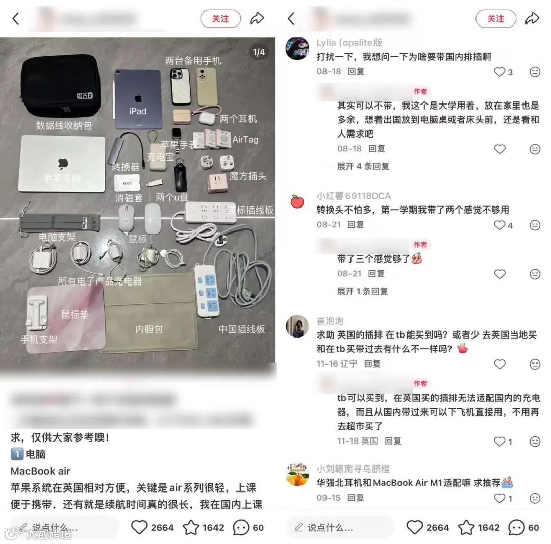 还有美区留子拍的 “上课必备电子设备”,准留学生就能跟着学里面的物品清单,做好记录,大概了解留学需要准备哪些东西;