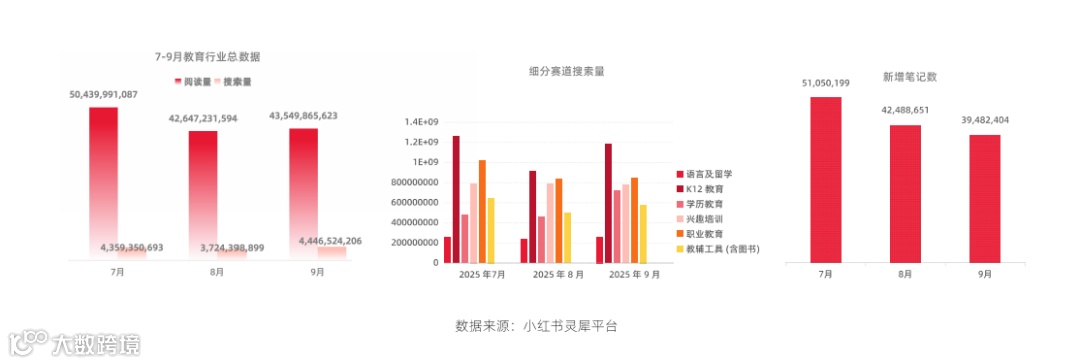 2025 年第三季度,教育行业搜索量涨了 12.9%,新增笔记数却下降,这说明赛道是 “有需求没人填” 的蓝海。