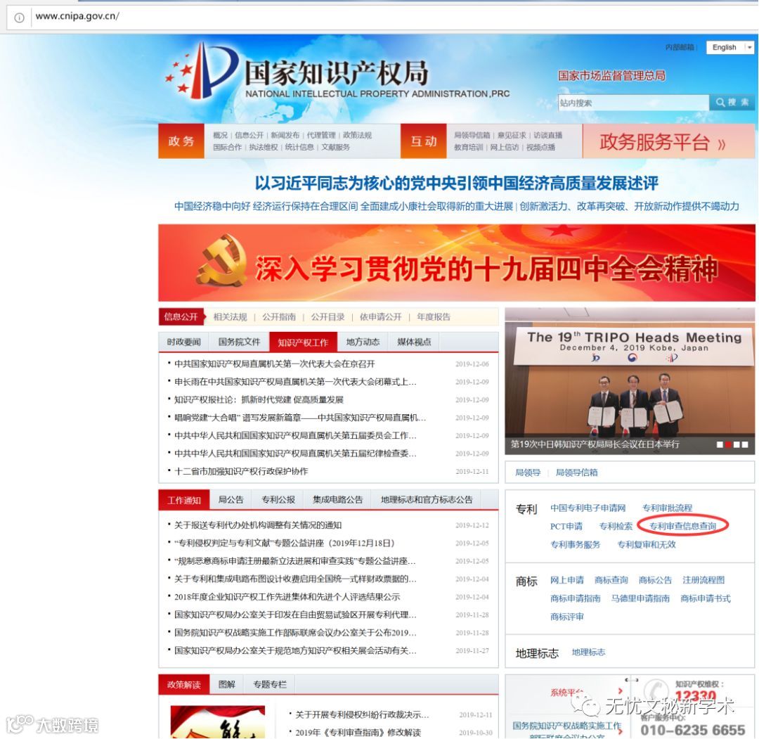 第一步:登陆国家知识产权局官网http://www.cnipa.gov.cn——专利审查信息查询——选择公众查询