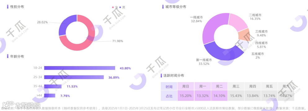 小红书上,女性用户占比超70%,而且一二线城市用户就占了一半,这里面富婆可不少,她们对高品质、个性化的产品和服务需求非常高。