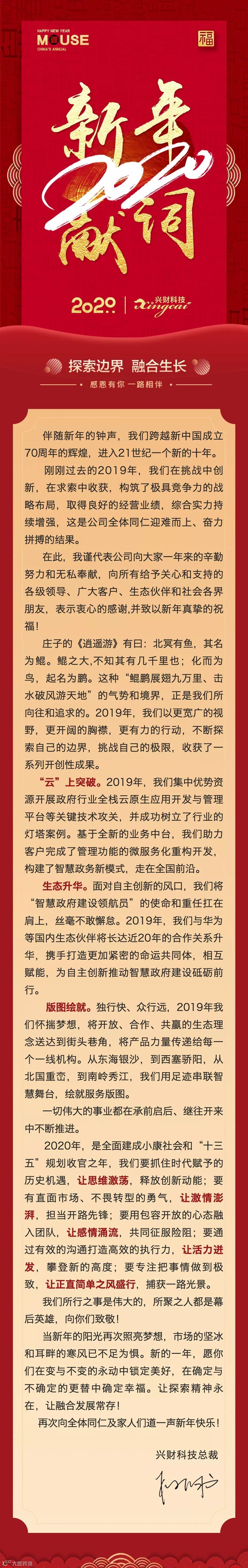 兴财科技总裁杨葆松2020新年献词: 探索边界 融合生长