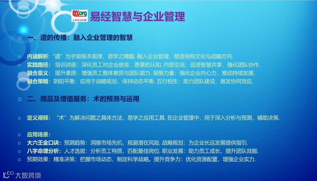 “道”在易学中代表着宇宙间的根本规律和原则,是万物运行的本质. 在企业管理中,“道”的传播意味着将易学中的智慧融入企业的核心价值观和管理理念中,形成独特的企业文化和战略方向.2026年开设《易经智慧与企业管理》系列课程.