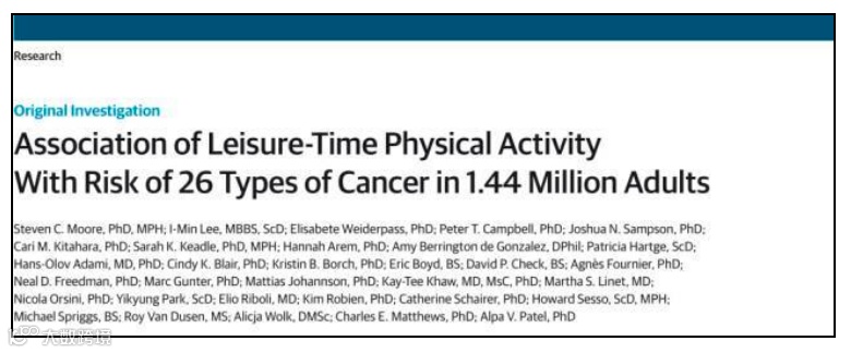 2016年《美国医学会内科学》杂志上发表的一篇涉及欧美144万人的研究,统计了运动与26种不同癌症类型风险相关的情况,发现长期锻炼的人至少13种癌症发病率都显著降低。