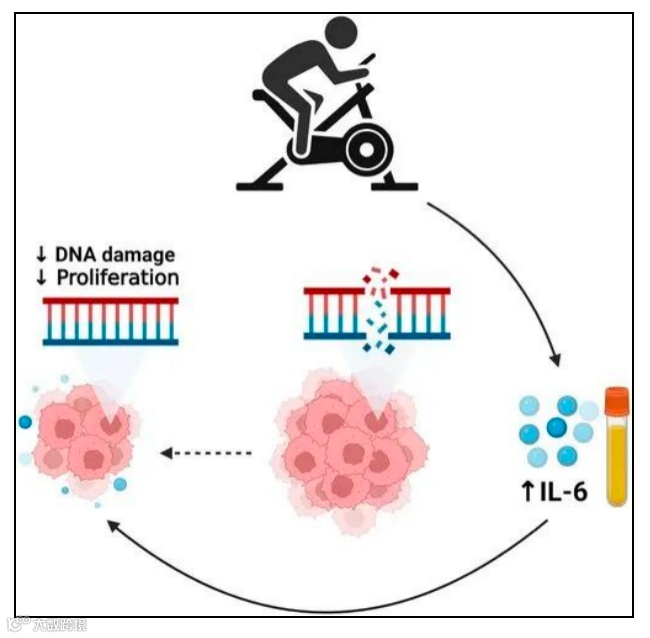 2022年2月发表在《国际癌症杂志》的一项研究发现,当个体长时间坚持每周多次中等强度的有氧运动时,体内会释放出更多对抗癌有作用的分子,比如白介素-6(IL-6),这些分子能对异常细胞发挥作用,促进DNA修复,减缓癌细胞的生长。