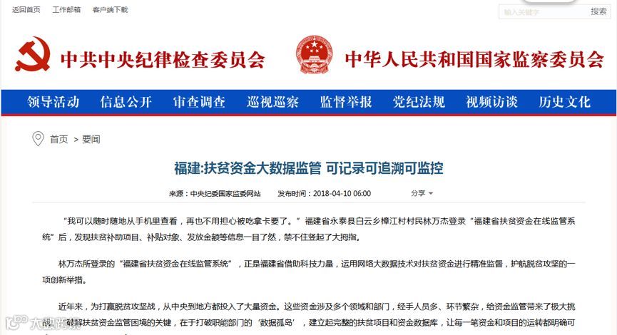大数据平台的运用,使广大扶贫对象及社会群众不仅可以便捷地参与到扶贫监督工作中,还能足不出户申报项目、查询资金拨付情况。同时,也极大地提升了纪检监察机关监督执纪效率,节约了监督执纪资源。“过去核实扶贫领域的问题线索很麻烦,比如要了解一笔扶贫款的去向得跑多个部门调取信息。如今,只要坐在电脑前,利用大数据平台,几分钟即可完成查核。”福建省纪委有关工作人员表示。