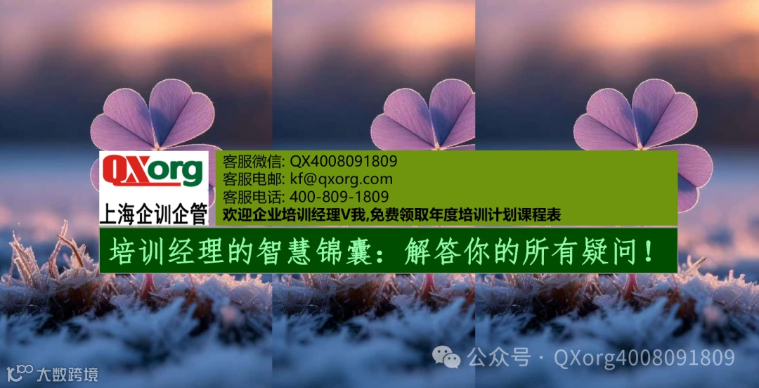 您有任何培训需求,只需轻点左下角的“阅读原文"即可方便地提交您的培训诉求。我们的专业客服团队会在收到您的诉求后的两个工作日内与您取得联系,确保您的需求得到迅速响应.如果您急于寻求帮助,也可直接通过客服微信号:QX4008091809与我们取得联系.