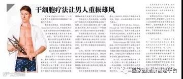 上海本地发行量最大的《新民晚报》就曾以“干细胞疗法让男人重振雄风”为题,对国外一则阴茎干细胞注射治疗阳痿的临床案例进行了报道。