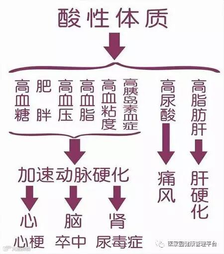 1、对循环系统的影响:体液偏酸使 血液粘稠度增高、血液循环减慢、血液中的脂质类物质易沉积在血管壁上,导致早期动脉硬化、血栓或心、脑血管疾病。