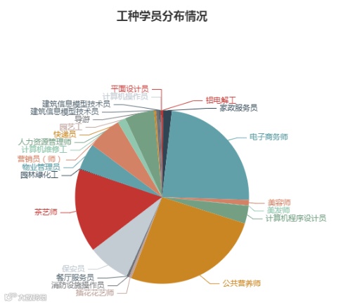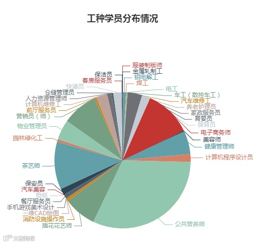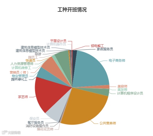 茶艺师、电子商务师、公共营养师、快递员、人力资源管理师、网络工程师、营销员、CAD、Flash、汽车美容汽车维修、钳工、手机游戏、保育员、金属挤压工、精整工、重冶火法冶炼工、金属扎制工、电工、铝电解工-电解、铝电解工-炭素、铝电解工-熔铸、中式烹调师、眼镜定配工、设备点检员、育婴师、车工、服装制作工、焊工、美发师、汽车维修工、西式面点师、中式面点师、小儿推拿、养老护理员、育婴员、重冶湿法冶炼、美容师、客房服务员、前厅服务员、农业技术员、物业管理员、花卉园艺工、会计、劳动关系调解员、仓储管理员、消防员、健康管理师、插花花艺师、服装设计师、计算机程序员、计算机维修工、快递员、人力资源管理师、网络工程师、营销员、园林绿化工、餐厅服务员、家政服务员、安全员、保安员、建筑信息模型技术员。