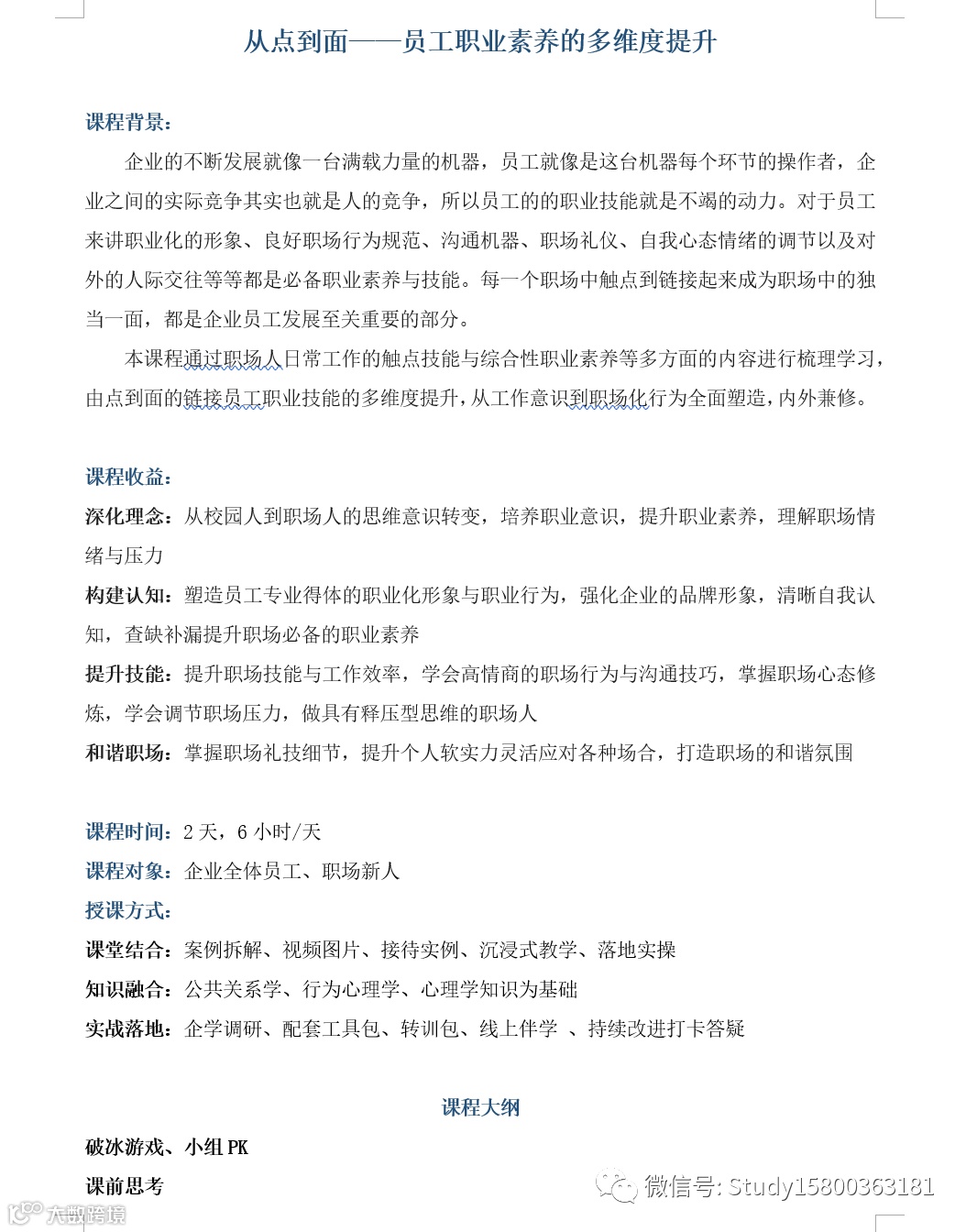 张老师: 从点到面员工职业素养的多维度提升 上海企训企管
