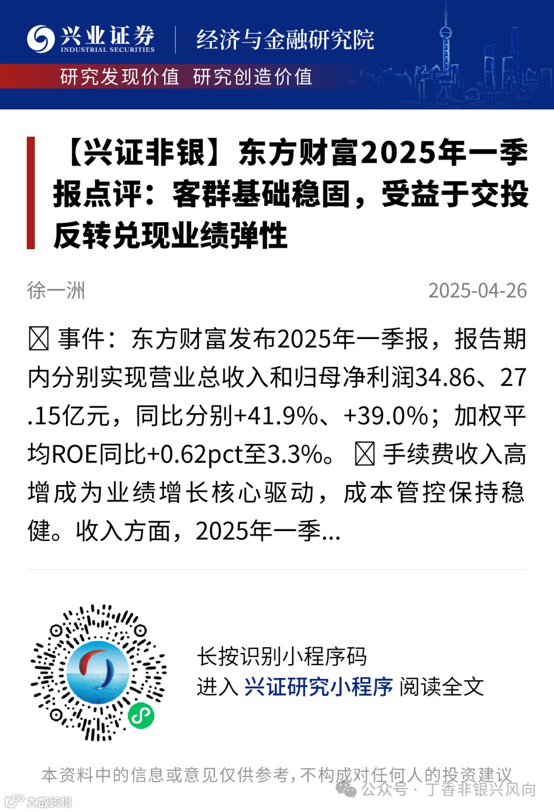 证券研究报告:《东方财富2025年一季报点评:客群基础稳固,受益于交投反转兑现业绩弹性》