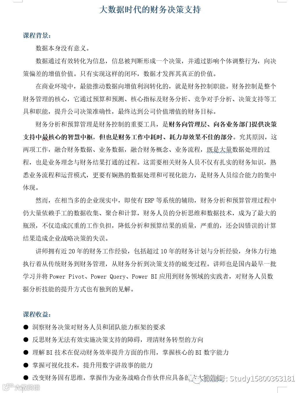 张老师: 大数据时代的财务决策支持 上海企训企管