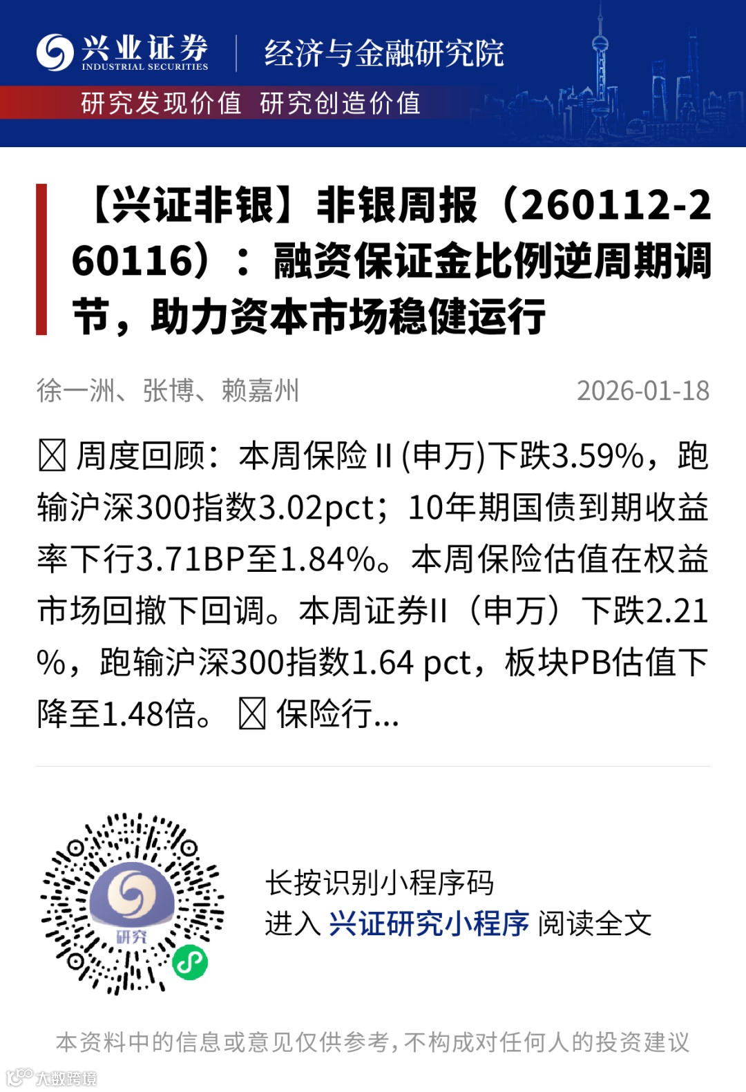 证券研究报告:《非银周报(260112-260116):融资保证金比例逆周期调节,助力资本市场稳健运行》