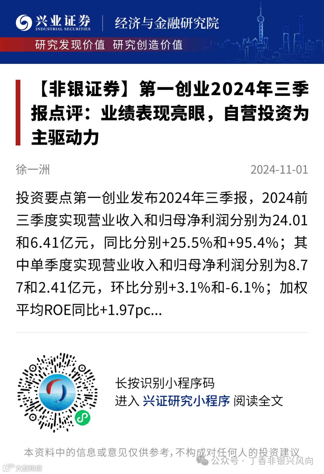 证券研究报告:《第一创业2024年三季报点评:业绩表现亮眼,自营投资为主驱动力》