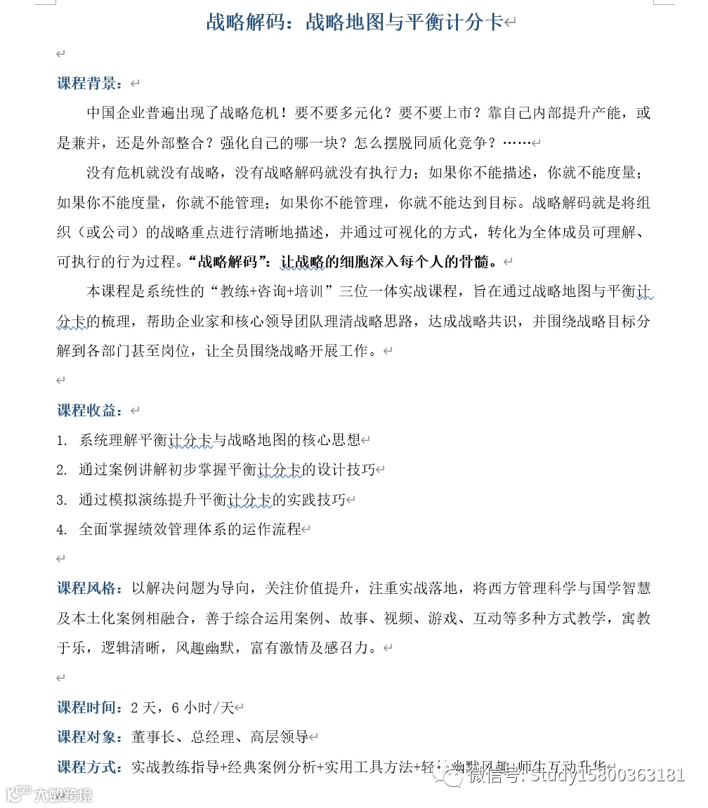 王老师: 战略解码-战略地图与平衡计分卡 上海企训企管