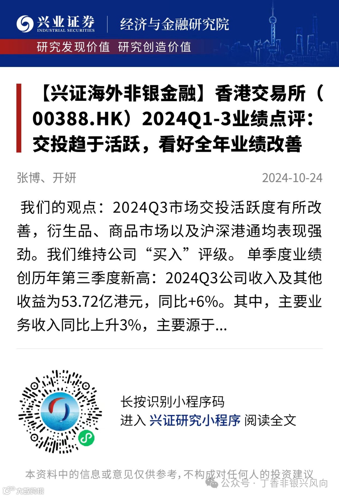 证券研究报告:《香港交易所(00388.HK)2024Q1-3业绩点评:交投趋于活跃,看好全年业绩改善》