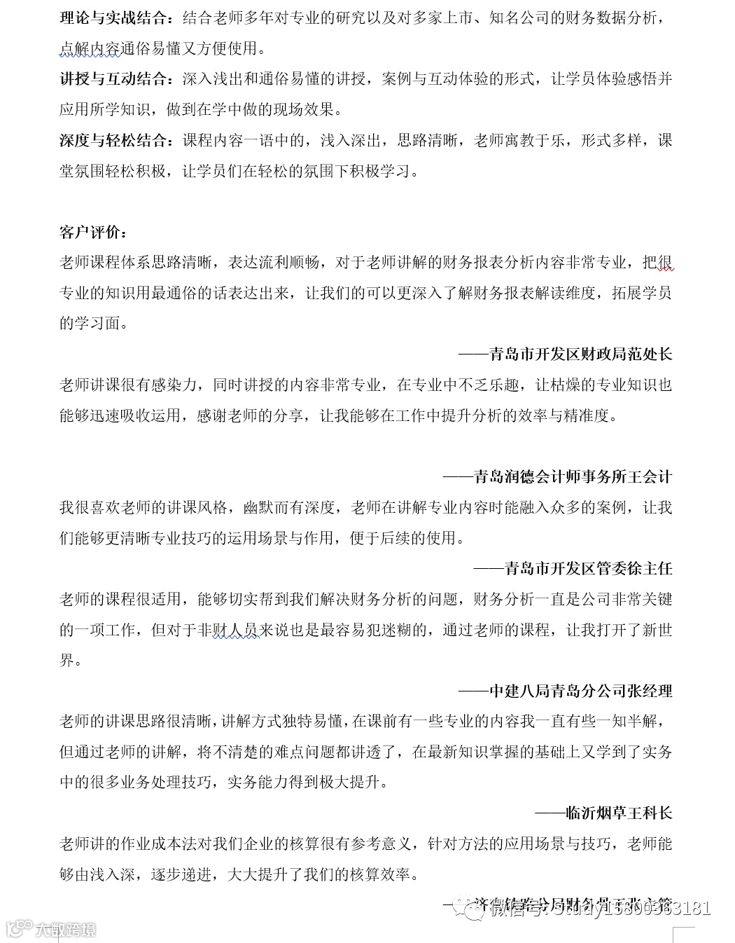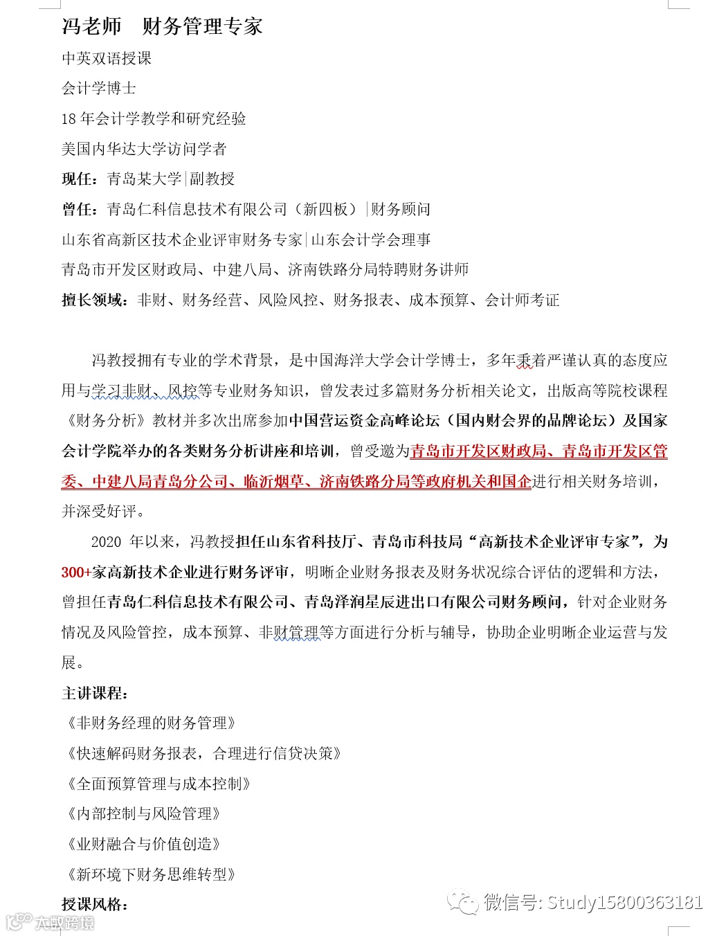 师资优选:财务管理_冯老师 上海企训企管