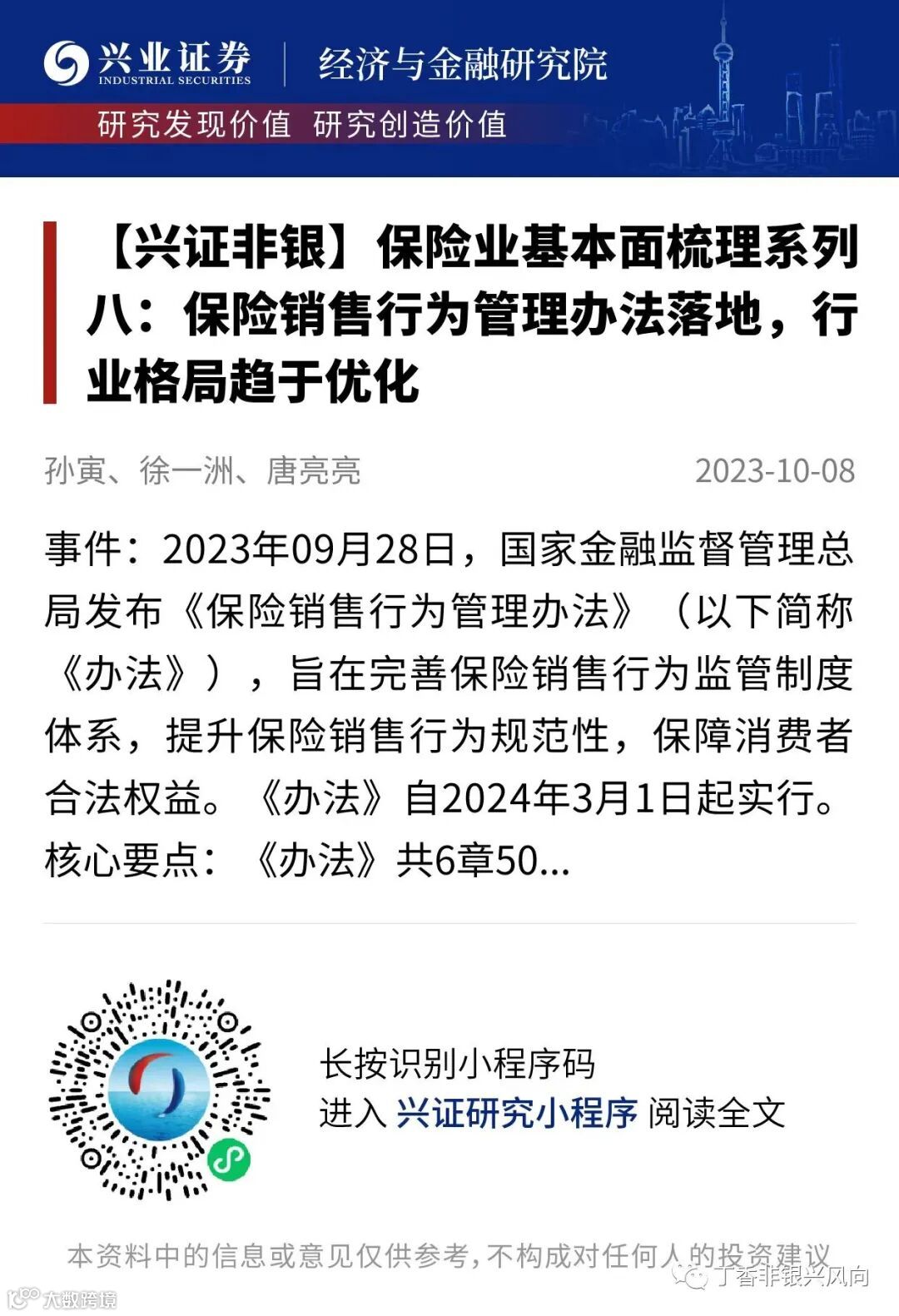 市场有风险,投资需谨慎。本平台所载内容和意见仅供参考,不构成对任何人的投资建议(专家、嘉宾或其他兴业证券股份有限公司以外的人士的演讲、交流或会议纪要等仅代表其本人或其所在机构之观点),亦不构成任何保证,接收人不应单纯依靠本资料的信息而取代自身的独立判断,应自主做出投资决策并自行承担风险。根据《证券期货投资者适当性管理办法》,本平台内容仅供兴业证券股份有限公司客户中的专业投资者使用,若您并非专业投资者,为保证服务质量、控制投资风险,请勿订阅或转载本平台中的信息,本资料难以设置访问权限,若给您造成不便,还请见谅。在任何情况下,作者及作者所在团队、兴业证券股份有限公司不对任何人因使用本平台中的任何内容所引致的任何损失负任何责任。