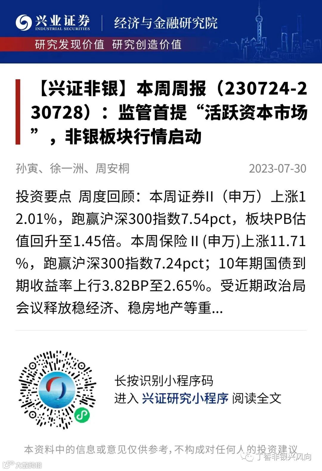 我们发布了《本周周报(230724-230728):监管首提“活跃资本市场”,非银板块行情启动》,欢迎阅读!