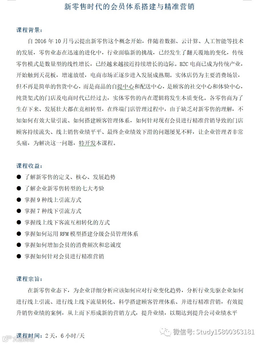 赵老师:新零售时代会员体系搭建与精准营销 上海企训企管