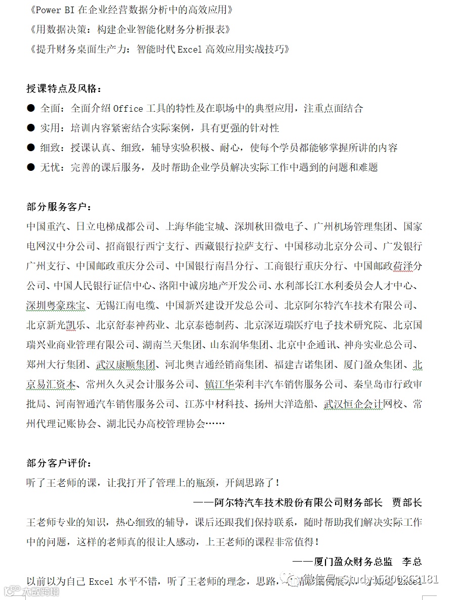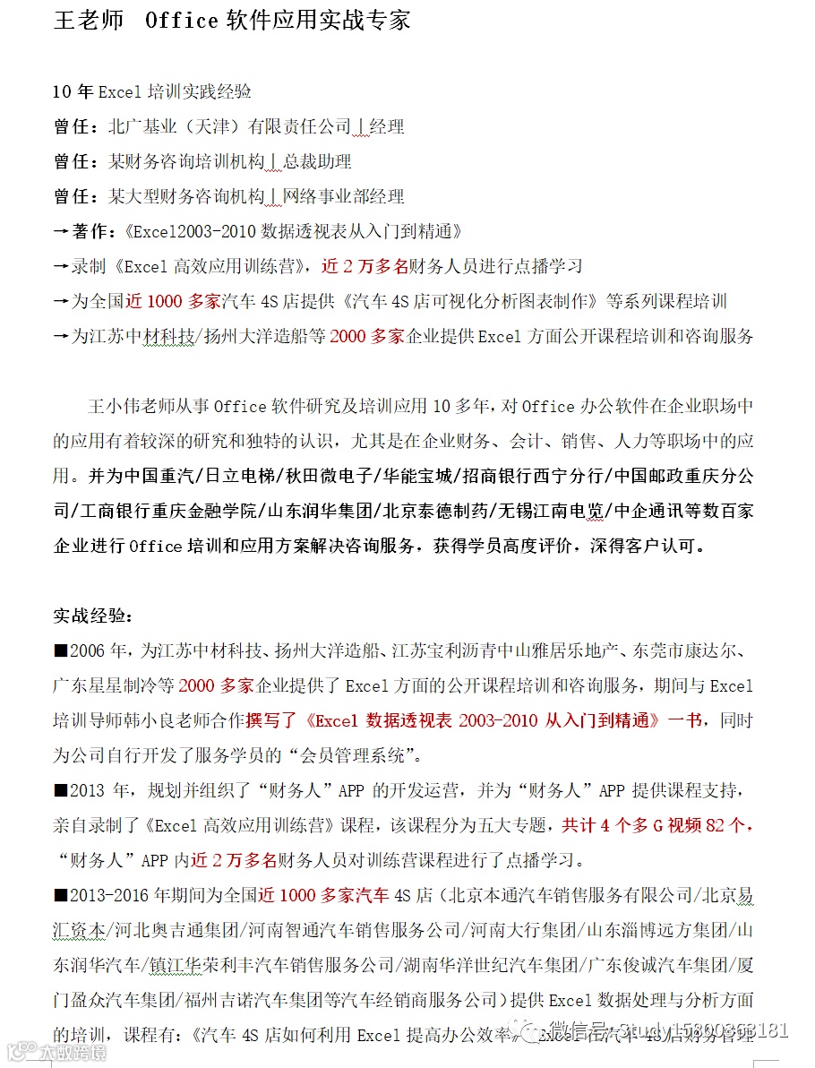 师资优选: Office软件应用实战专家_王老师 上海企训企管