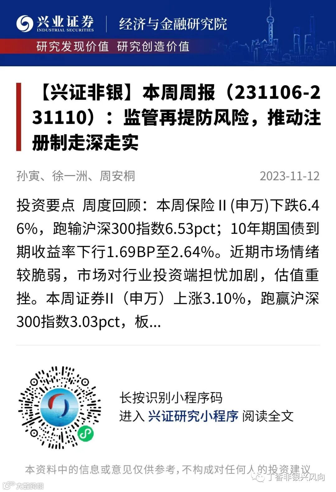 我们发布了《兴证非银周报(231106-231110):监管再提防风险,推动注册制走深走实》,欢迎阅读!
