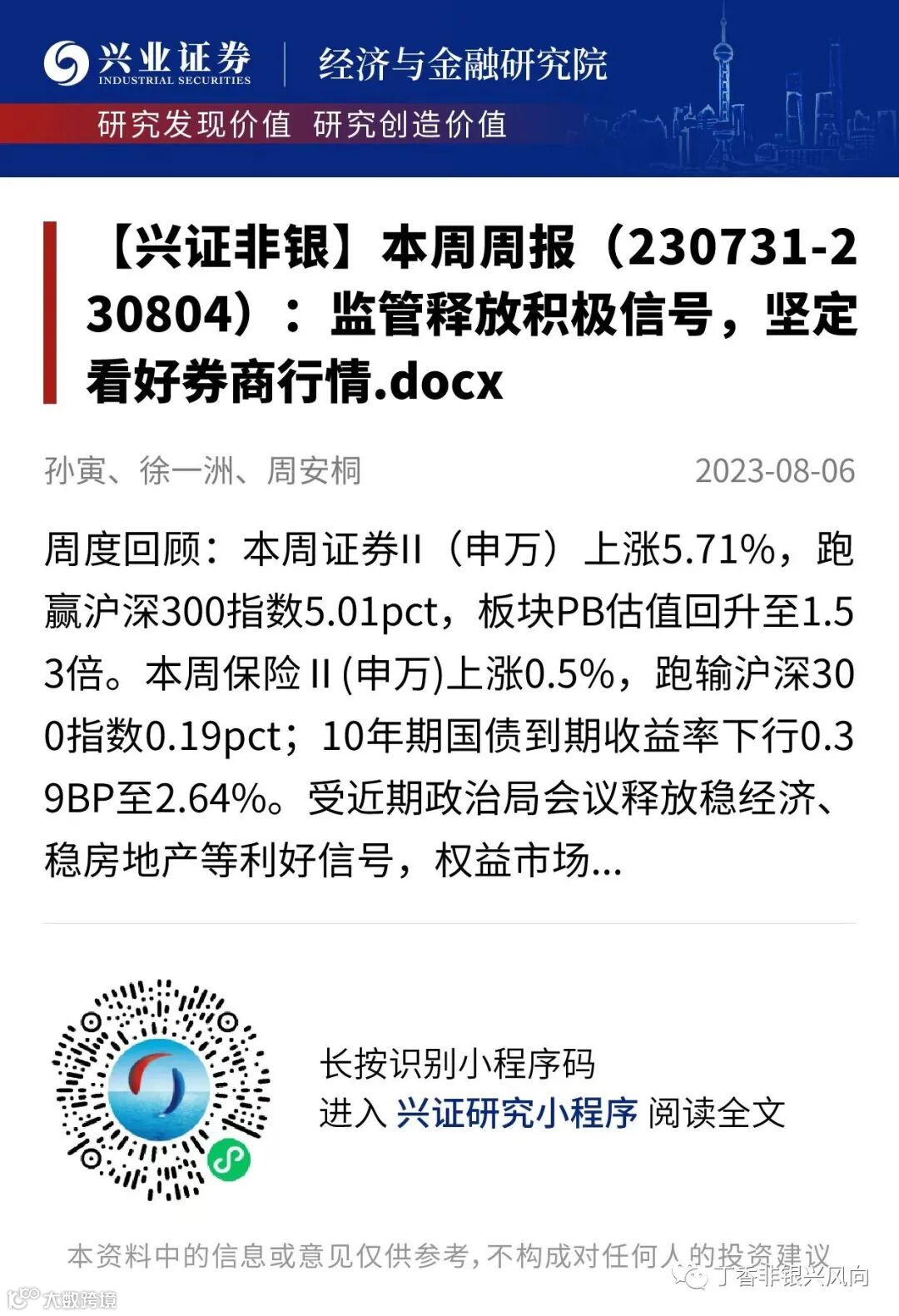 本平台旨在沟通研究信息,交流研究经验,不是兴业证券股份有限公司研究报告的发布平台,所发布观点不代表兴业证券股份有限公司观点。任何完整的研究观点应以兴业证券股份有限公司正式发布的报告为准。本平台所载内容仅反映作者于发出完整报告当日或发布本平台内容当日的判断,可随时更改且不予通告。