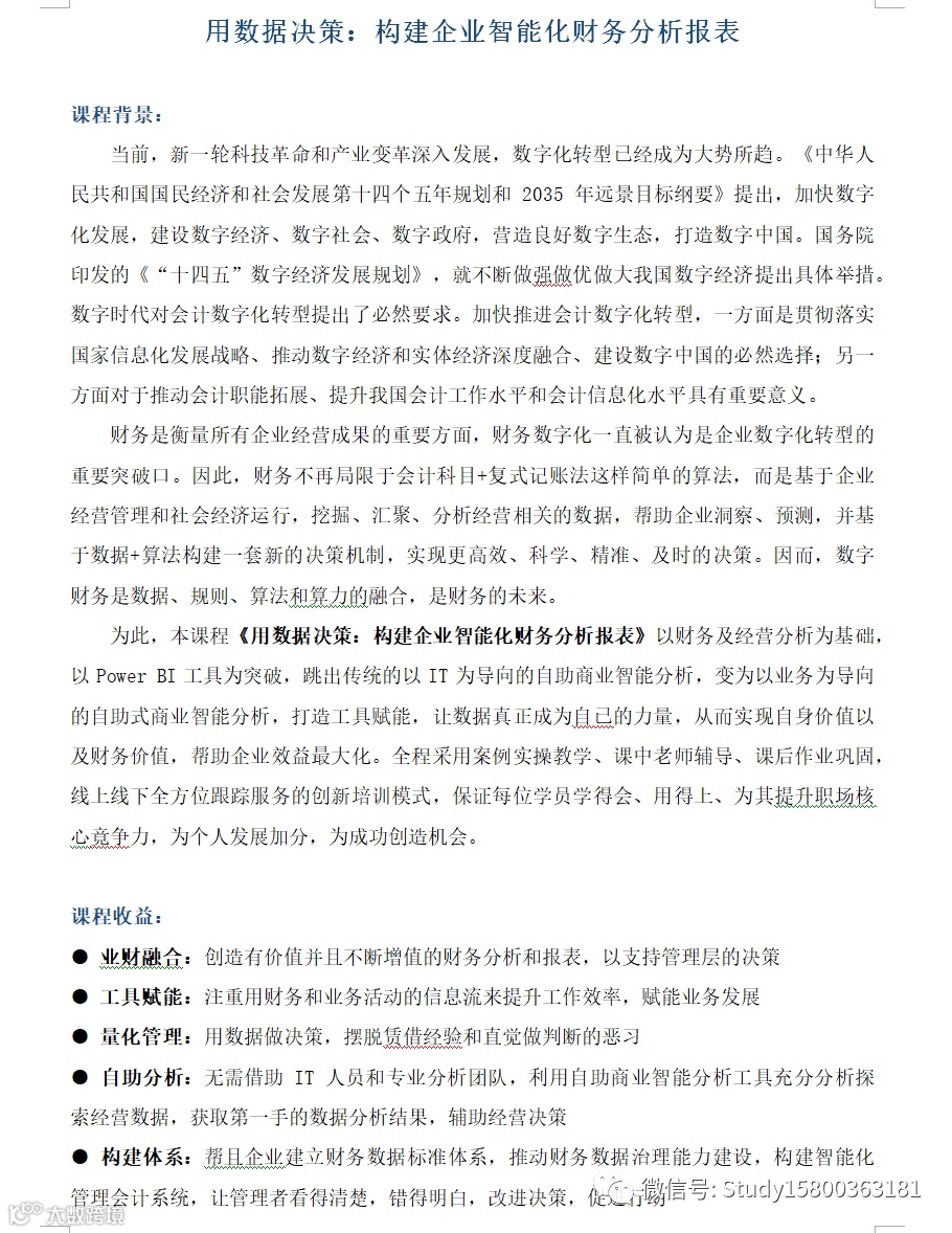 王老师:构建企业智能化财务分析报表 上海企训企管