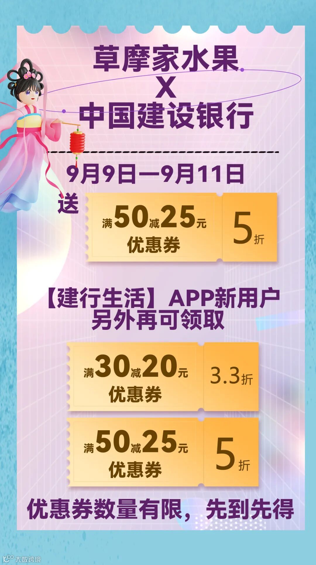 【佳节好礼攻略】玫瑰三红蜜柚29.9元/箱,秋月梨59.8元/箱,新鲜椰青14.8元/2个,携手建行生活,领券满120减65元~