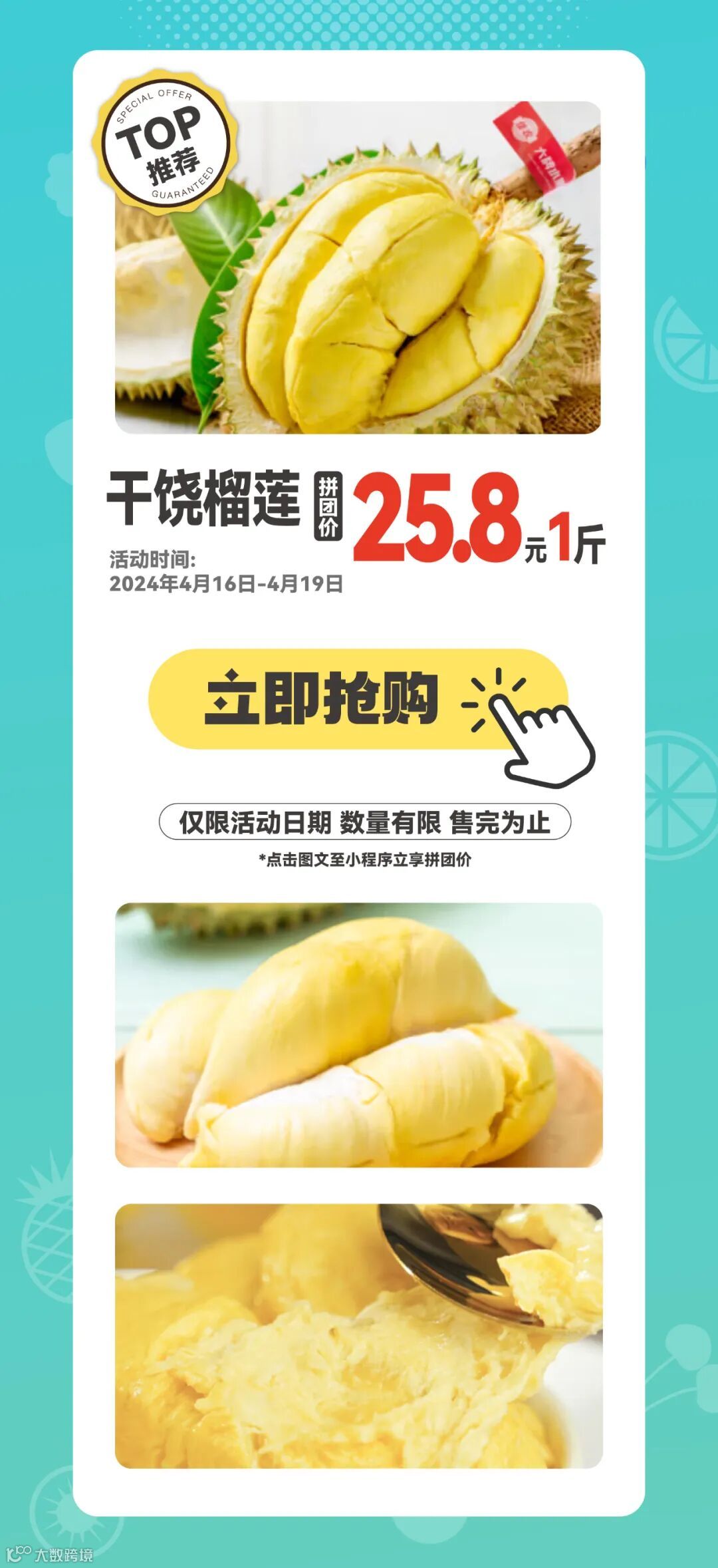【放肆星期二】干饶榴莲25.8元1斤,小台芒8.8元2斤,怡颗莓9.9元1盒,丑八怪8.8元2斤,更多福利锁定草摩家水果!