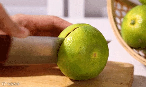 拿起一颗蜜桔,青绿色的果皮