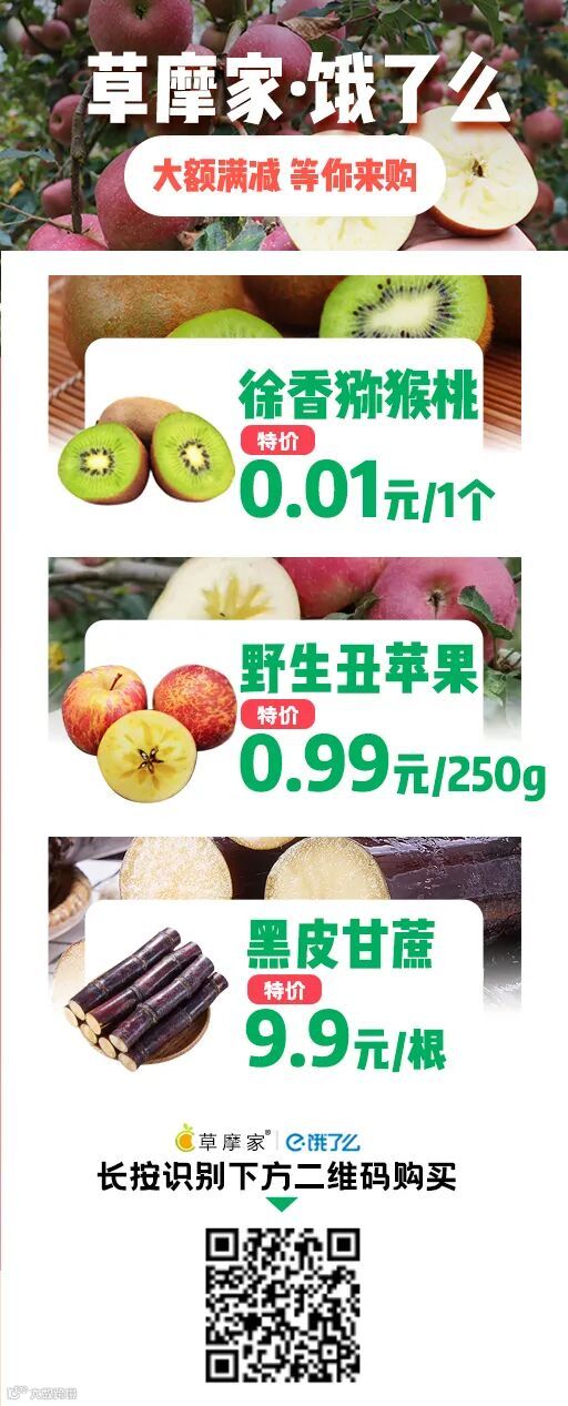 饿了么丨徐香猕猴桃0.01元1个,野生苹果0.99元/250g,大额满减,等你来购