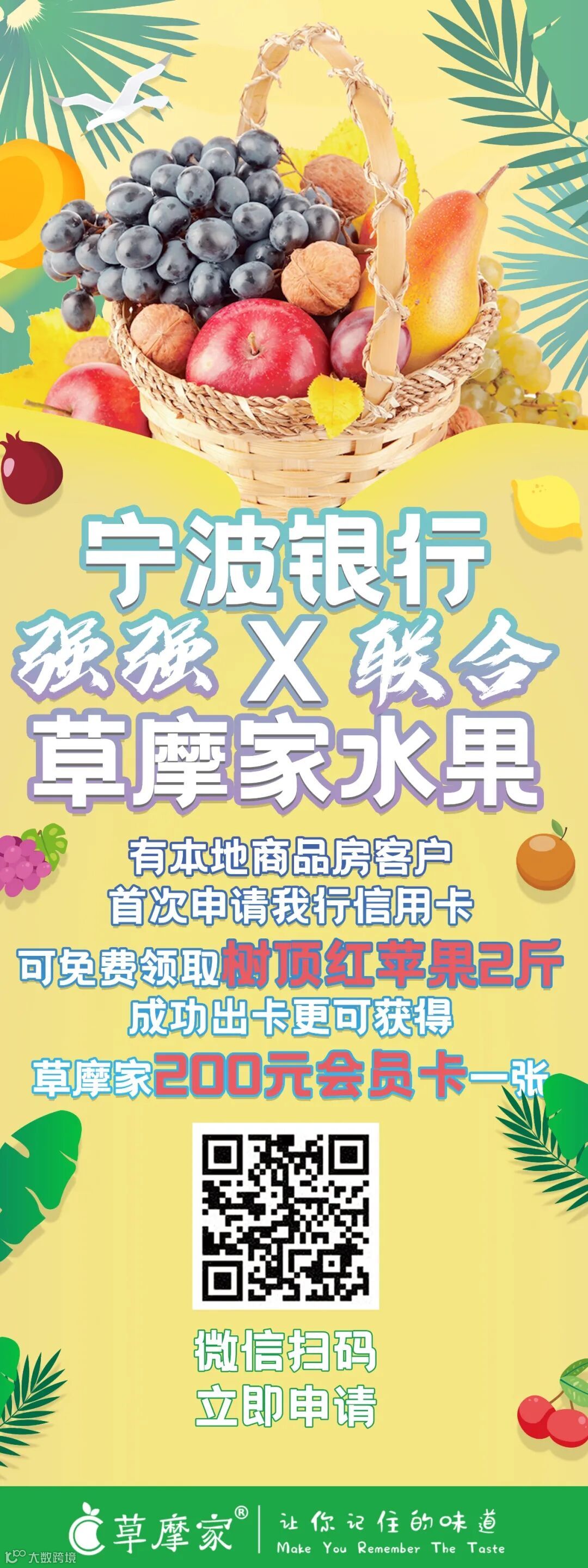 200元会员卡免费送!宁波银行×草摩家水果强强联合,申请即可领苹果!