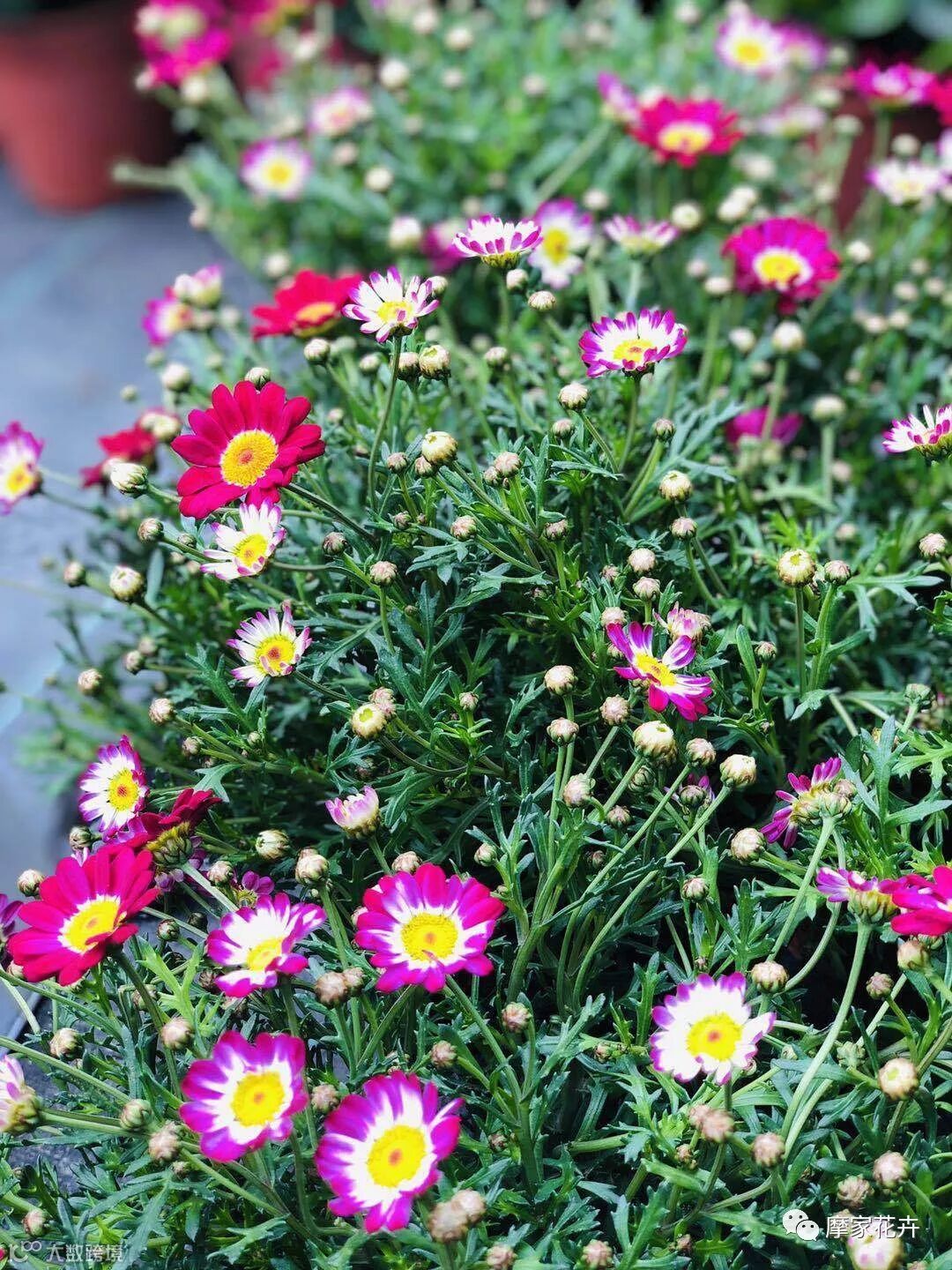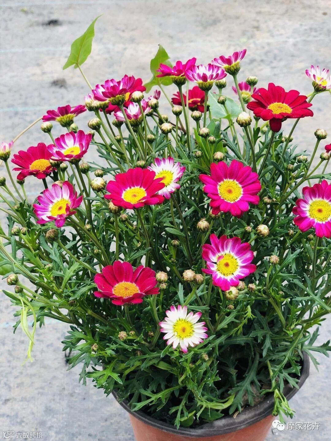 玛格丽特花叶宽卵形、椭圆形或长椭圆形,二回羽状分裂。一回为深裂或几全裂,二回为浅裂或半裂。舌状花瘦果有3条具白色膜质宽翅形的肋。两性花瘦果有1-2条具狭翅的肋,并有4-6条细间肋。冠状冠毛长0.4毫米。花果期2-10月。盆栽观赏,或作背景绿叶材料布置。