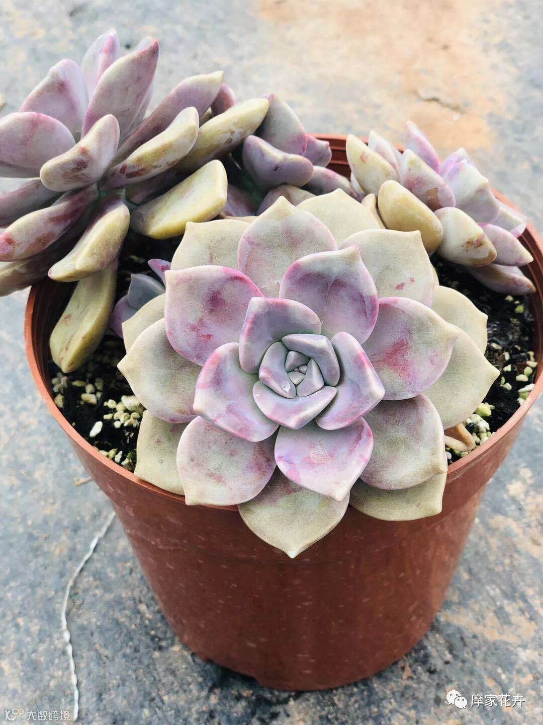 紫乐老桩是景天科多肉,是一个园艺培育品种,可以通过叶插繁殖,也可以砍头繁殖,想要让紫乐多爆崽,可以通过砍头繁殖栽培。紫乐喜阳,要摆放在阳光充足的地方养护哦。若是阳光不足,或者温差不大,它就会变成紫红色,没出状态的紫乐叶面稍凹,叶片是淡绿色的,上带有一层白霜。在阳光充足,且温差较大的环境下,它会逐渐变成紫红色。