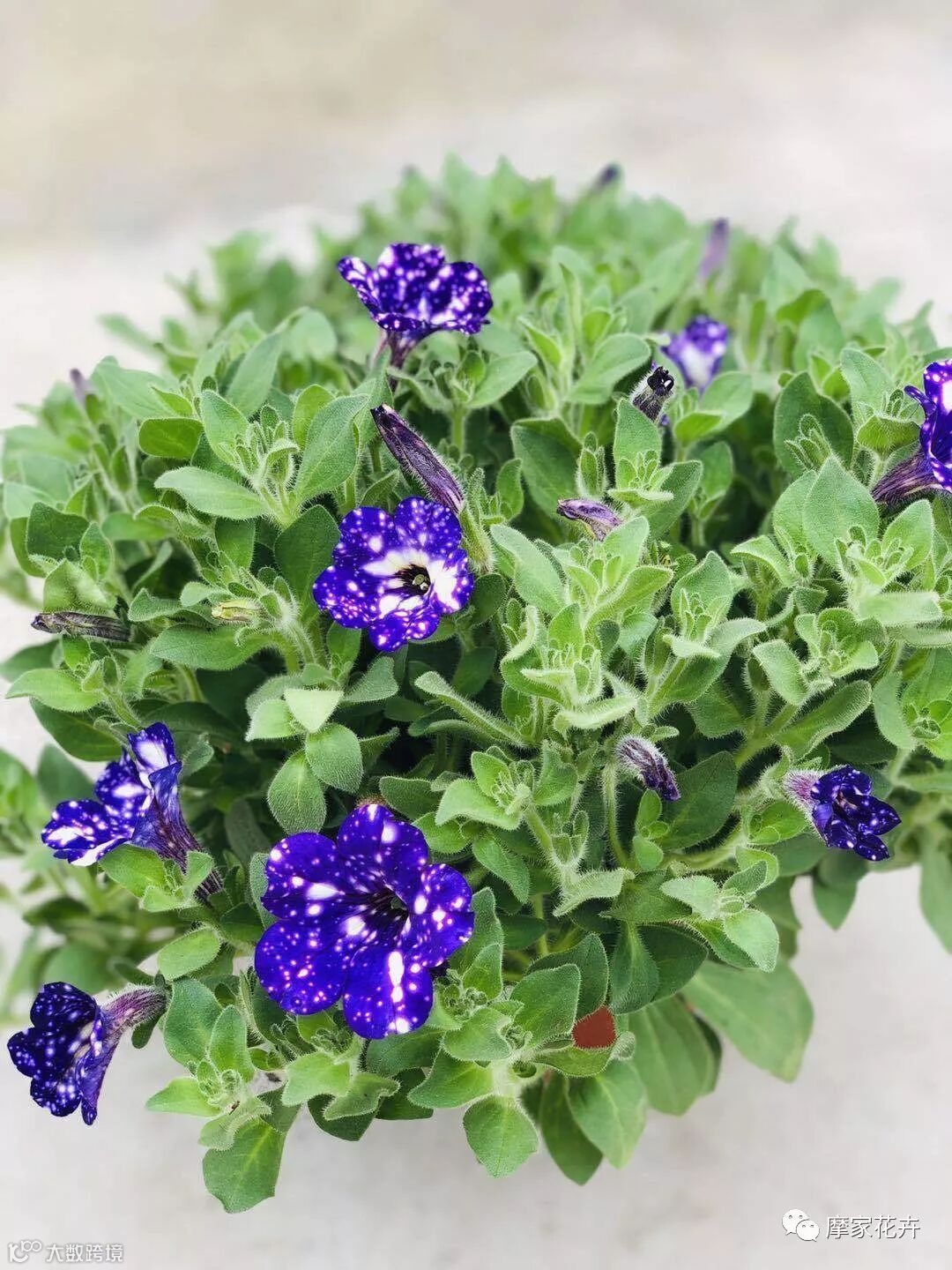 星空牵牛花是矮牵牛的一种,在它们紫色的花瓣具有独特的花纹,让观赏者看起来在它小小的花瓣上隐藏了一朵星云,神秘又漂亮,最神奇的是它的图案每一朵都是与众不同的,所以整片盛放是就看起来像是整个宇宙星空,因此而得名“星空牵牛花”。