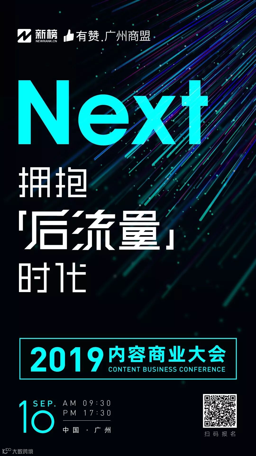 9月10日,新榜将在广州举办2019内容商业大会——拥抱“后流量”时代,携业内顶级嘉宾为你一一揭秘:
