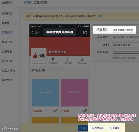 您可以直接编辑现有的店铺主页,或新建一个微页面装修,装修好了再将其设置为店铺主页。