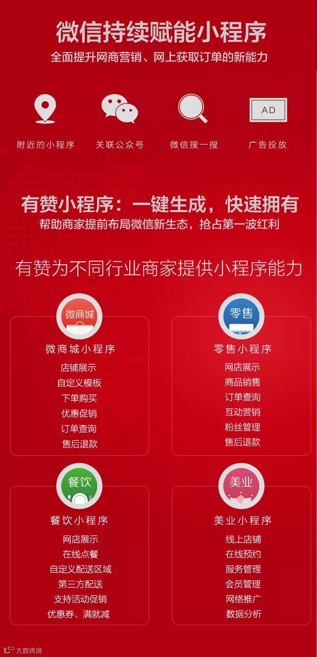 随着新零售的来临,小程序也以不可抵挡的趋势降临到我们生活当中,当然,这也是一个必然会产生的趋势,商业趋势的源头来自于消费者的需求,人们只会不断地拥有更多更广泛的需求渴望,而商业说到底就是要去满足这些需求而产生的。小程序是由人们对于一些流量的渠道渴望、日常便捷等需求所被挖掘出来的一个工具,那么小程序对于企业(商家)消费者到底是能带什么好处呢???