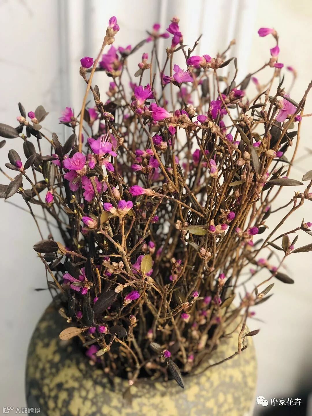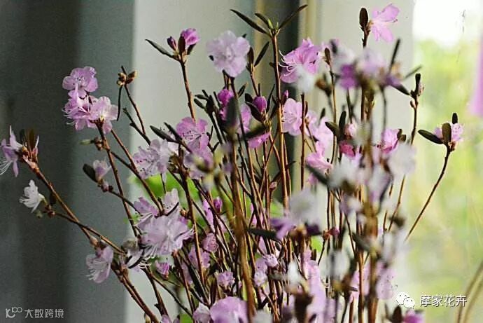 干枝杜鹃在北方寒冷的地方生长,枝条苍劲,骨力十足,只需要有一瓶清水,温度适宜的情况下,花骨朵很快就会绽放美丽,非常适合家庭插花。