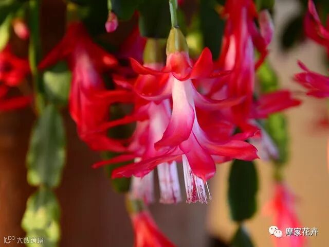 蟹爪兰原产于巴西,在热带和亚热带地区被广泛栽培。它喜欢温暖、凉爽的环境,比较耐旱、耐阴,适宜在20度左右的环境中生长。蟹爪兰花语吉利,因形状如同螃蟹的副爪而得名,基本在圣诞节、元旦左右开花,所以它又被称做“圣诞仙人掌”。它的节茎长且垂悬而下,适合装饰窗台、展览厅等地方,以渲染气氛。