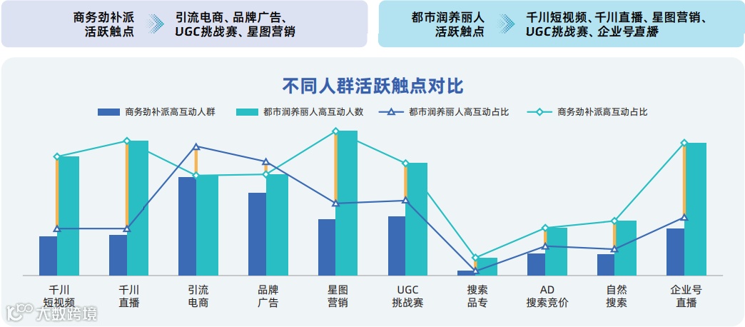 不同特色人群活跃触点的表现极具差异,因而体现其针对性匹配运营的重要性,通过对不同人群定向和场景化触达、提升人群的曝光和转化渗透。