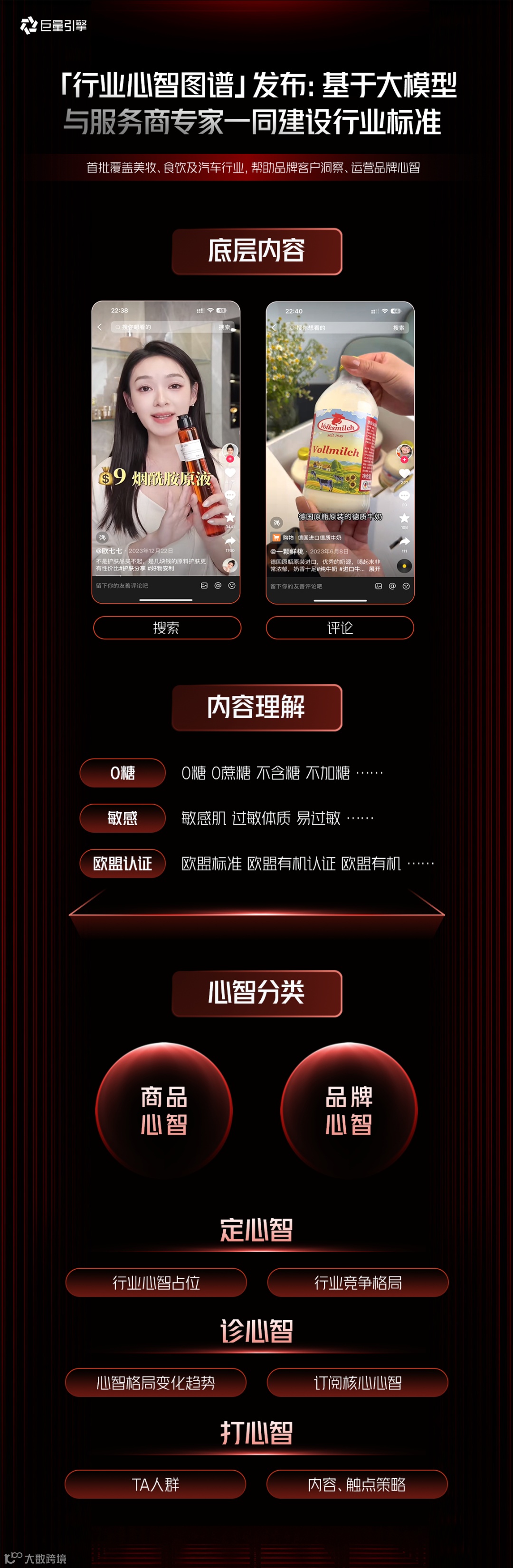 由此,巨量引擎发布「行业心智图谱」,帮助代理商进阶心智营销能力。这一工具基于大模型技术,联合营销科学金牌及中级认证服务商的行业专家一同建设行业标准,从用户的搜索行为和评论内容中挖掘深层信息,完成内容理解,并对“商品心智”和“品牌心智”进行精准分类。