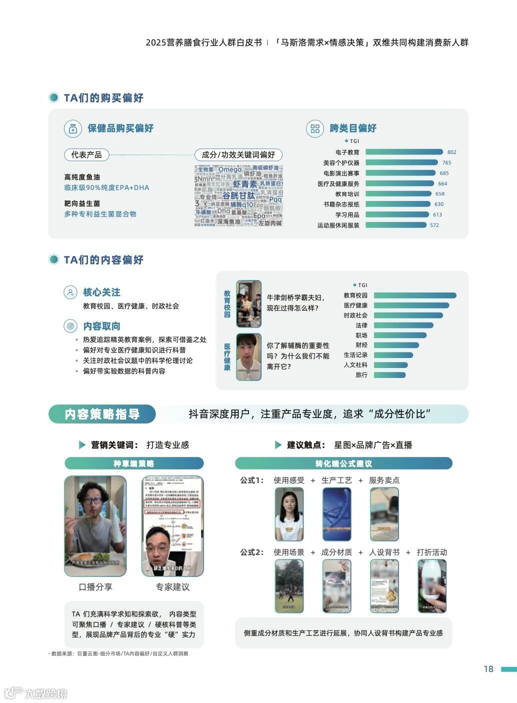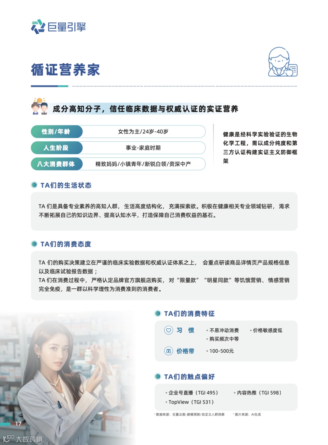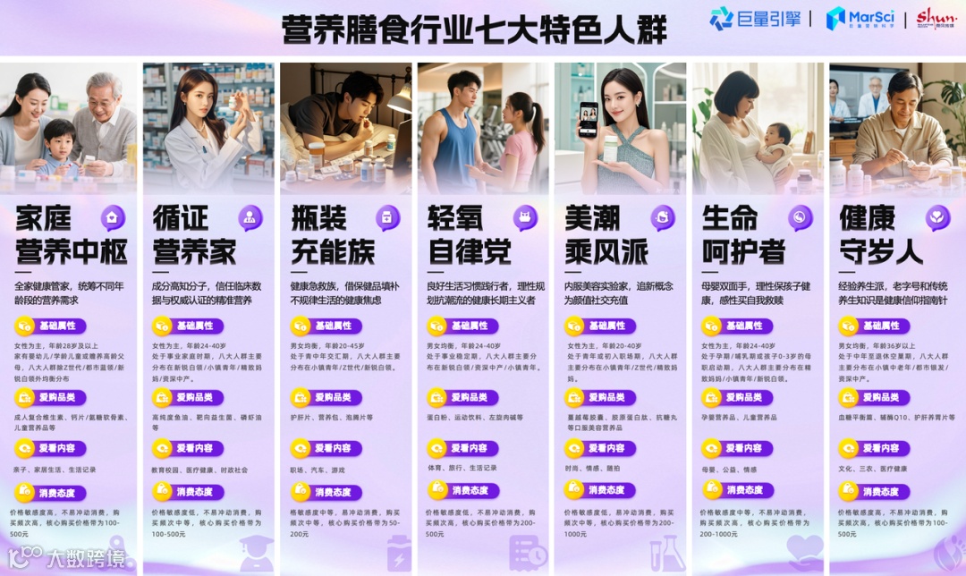 【循证营养家】: 他们是成分高知分子,信赖监测数据和权威认证,积极钻研健康知识以保障自身权益。消费时,TA们会仔细研读商品详情、成分及配料表,并严格认准官方旗舰店购买。