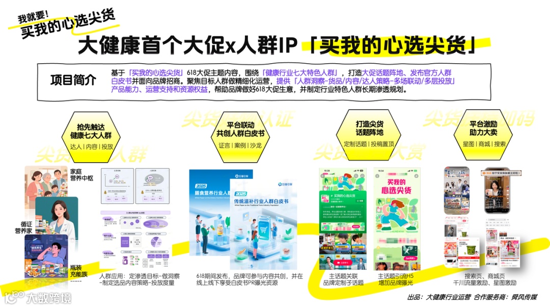 面对消费者日益精细化的需求,品牌如何精准触达、实现有效沟通成为关键。在此背景下,巨量引擎本地业务健康行业携手巨量引擎营销科学、巨量引擎生态业务及营销科学金牌服务商舜风传媒,于618“战役”打响之际发起「618买我的心选尖货」IP项目,并重磅发布《营养保健特色人群白皮书》(下文简称《白皮书》),为品牌大促提供深度洞察与实战利器。