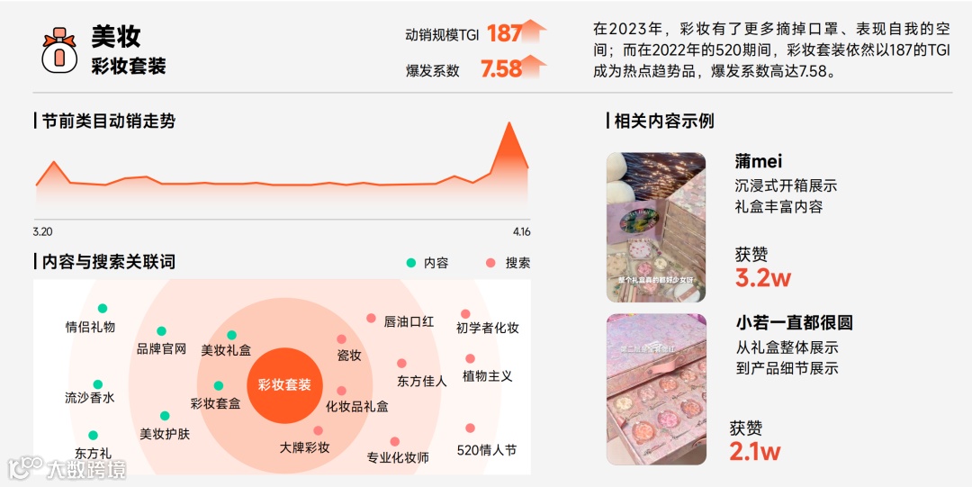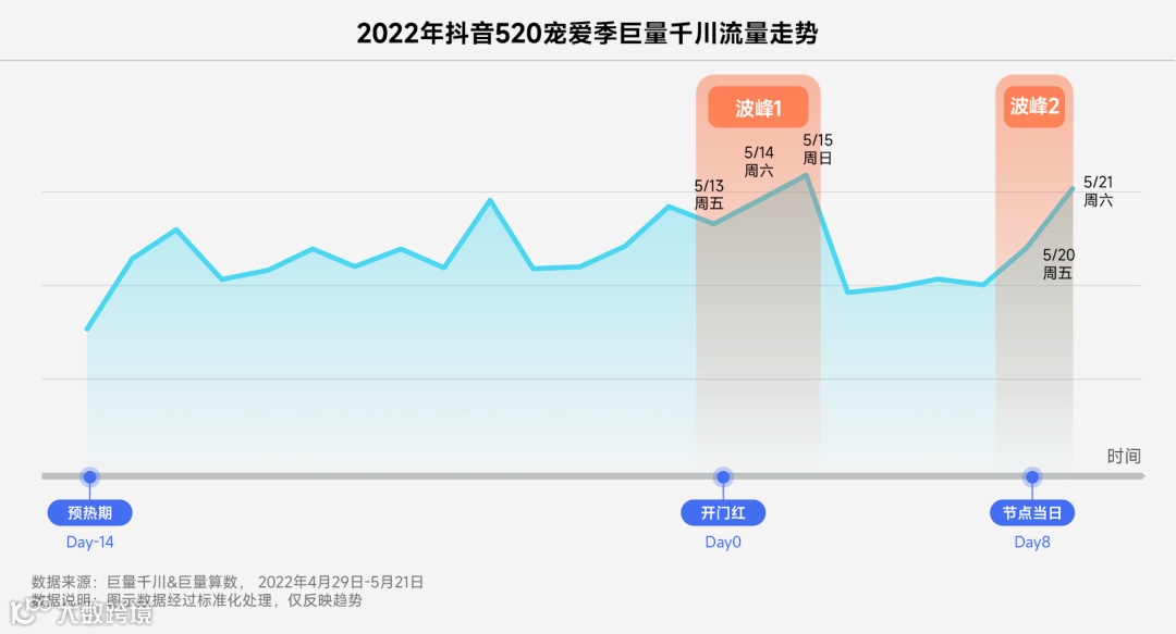 从2022年520全周期流量特征看,开门红与节点当日形成流量双峰,爆发力明显,节中存在一定放量空间。